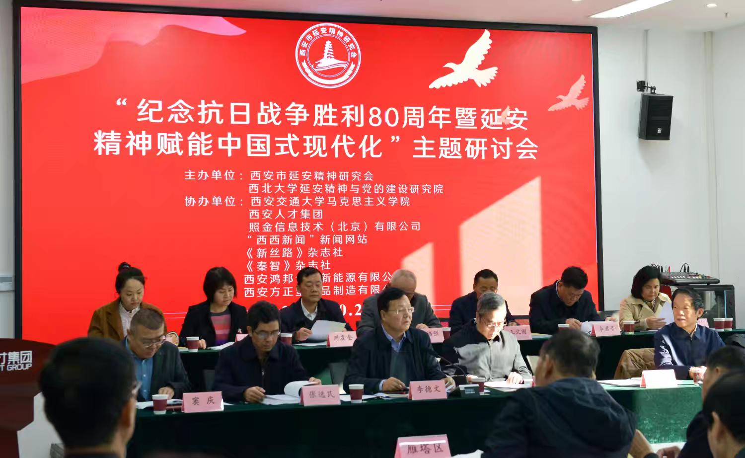 10月26日,由研究院与西安市延安精神研究会主办,西安交通大学马克思主义学院等八家单位共同举办的“纪念抗日战争胜利80周年暨延安精神赋能中国式现代化”主题研讨会在西安召开。市委宣传部副部长、市新闻出版局(版权局)局长杨丽萍,省延安精神研究会副会长赵志祥、副秘书长王文刚,市委党校常务副校长张选民,市委党史研究室副主任窦庆,市应急管理局副局长李君亭,市社科院副院长李博,研究院院长梁星亮等出席研讨会。会议由西安市延安精神研究会会长李德文主持。参加会议的还有市、区县研究会会长、副会长、秘书长、部分获奖论文作者代表等100余人。